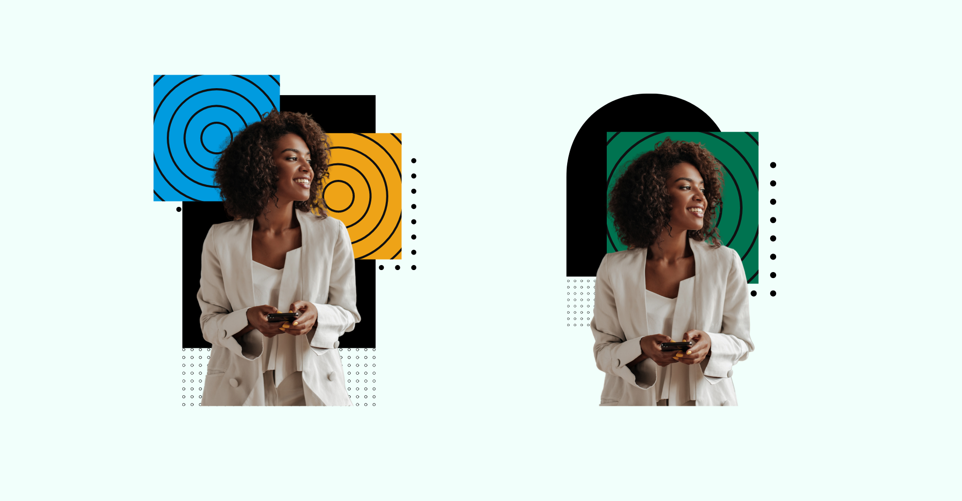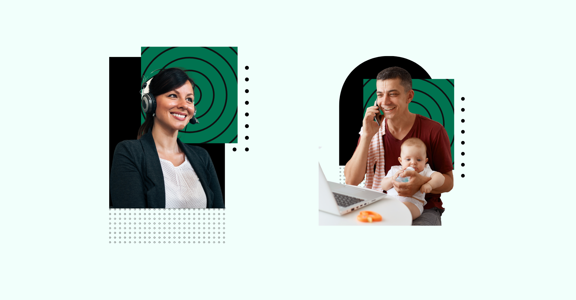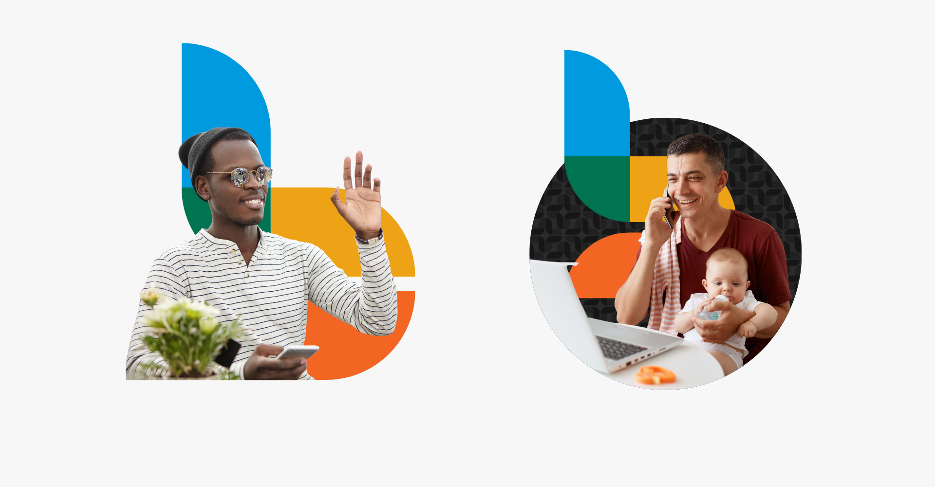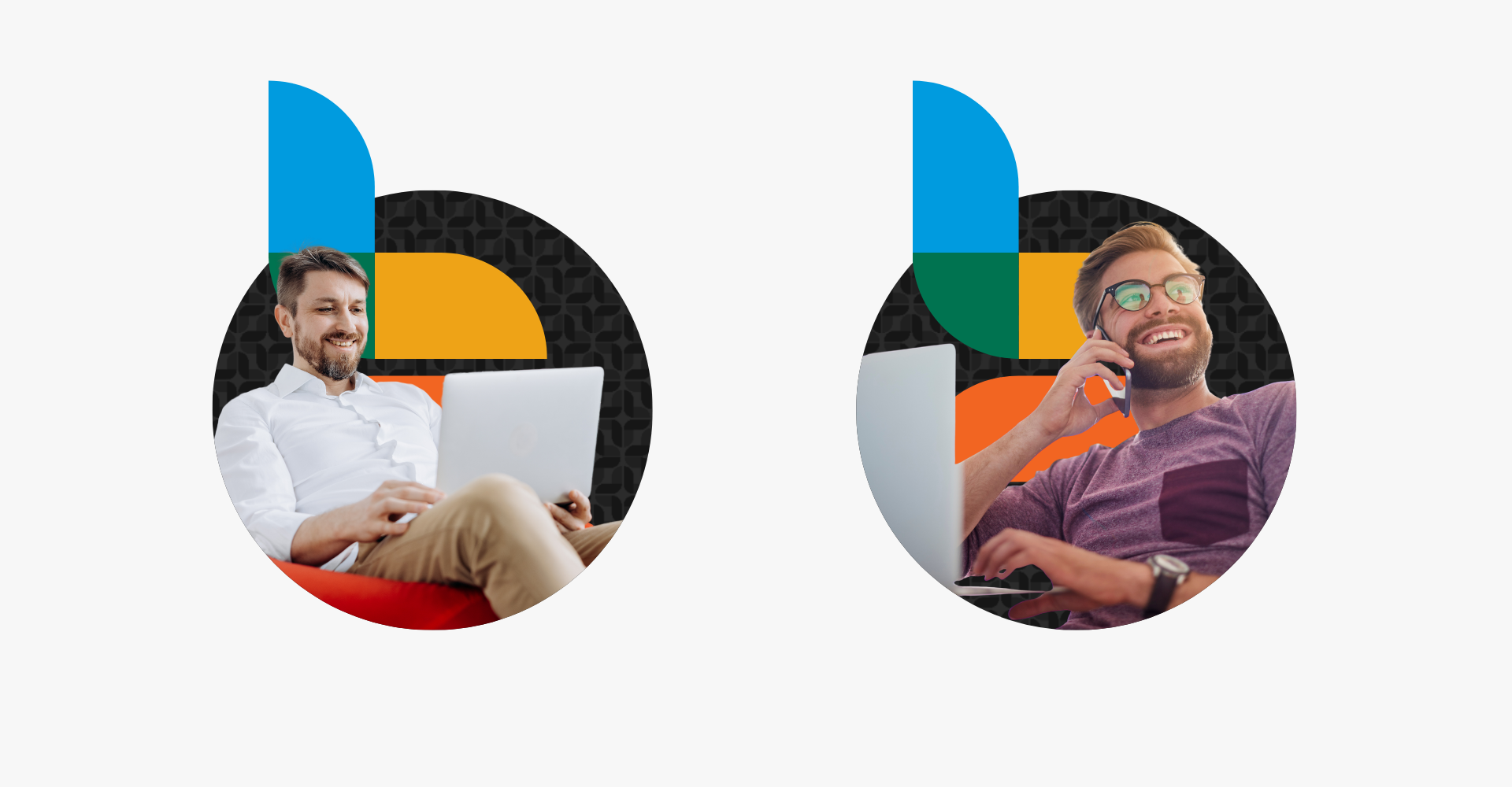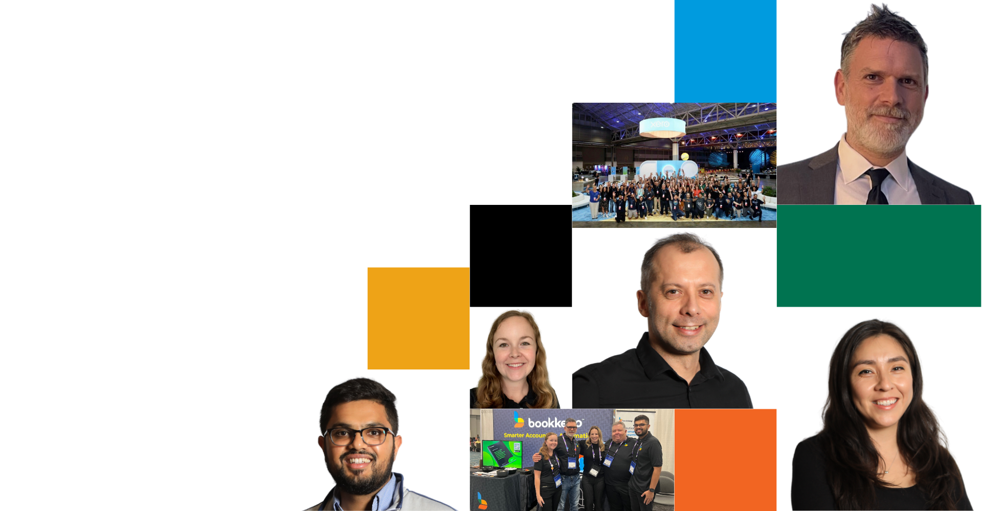 Below I’ve highlighted some of early visual direction exploration slides that I created for this project. The team at Bookkeep was fond of the geometric shapes, dots and grid-type elements mashed with the imagery of happy people. It provided a good balance between smiling faces and geometric shapes which they were hoping to achieve.