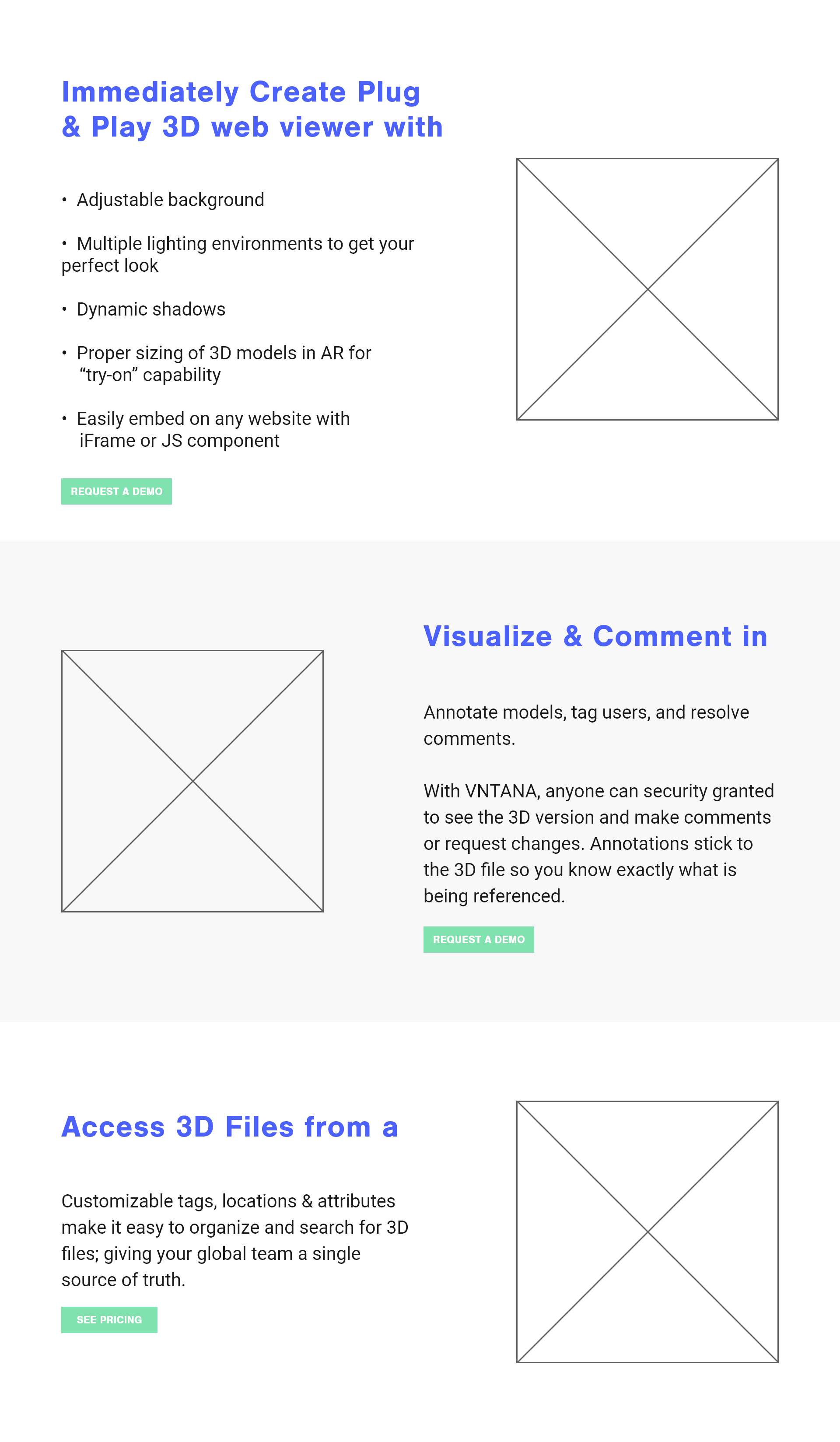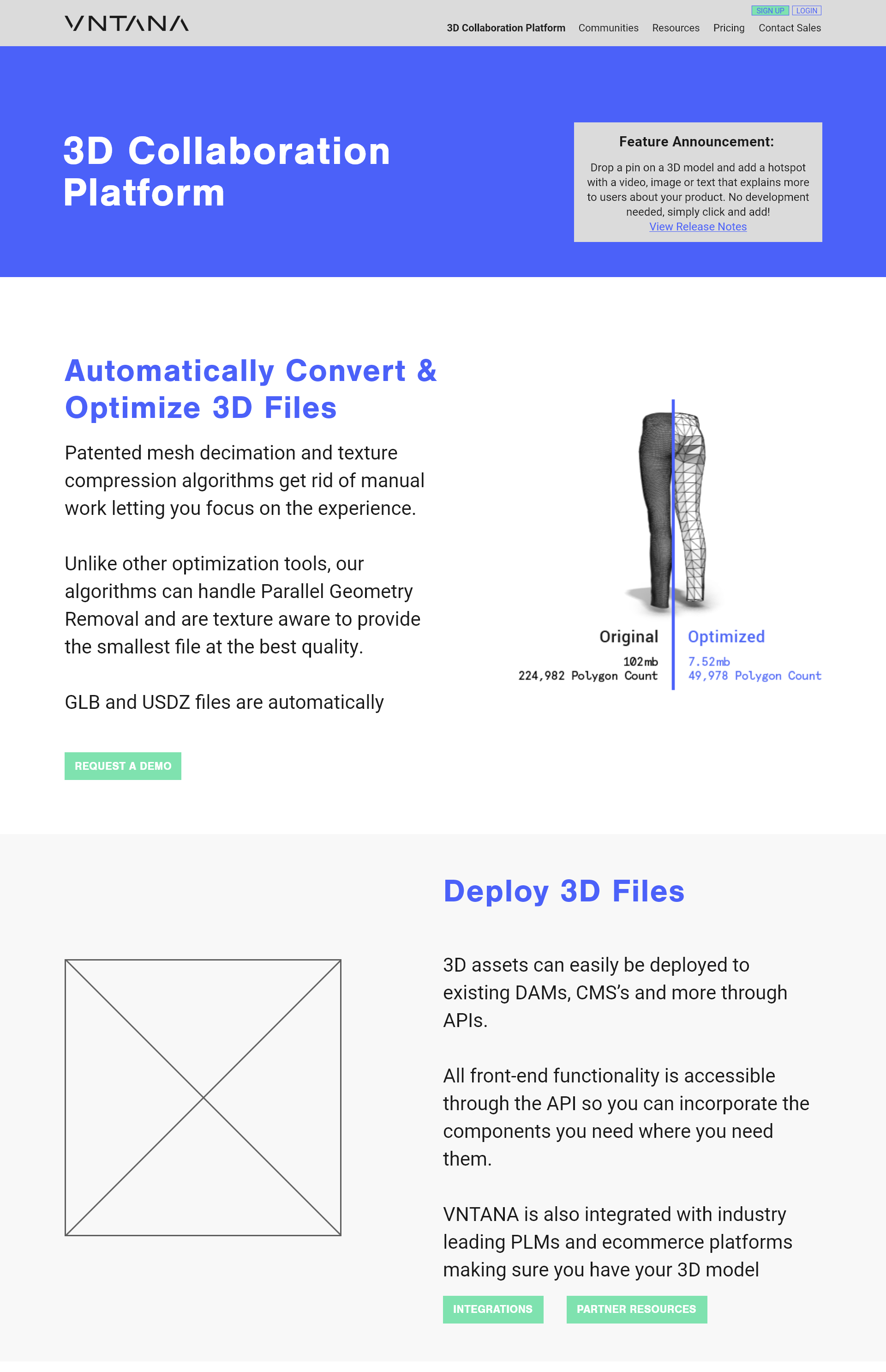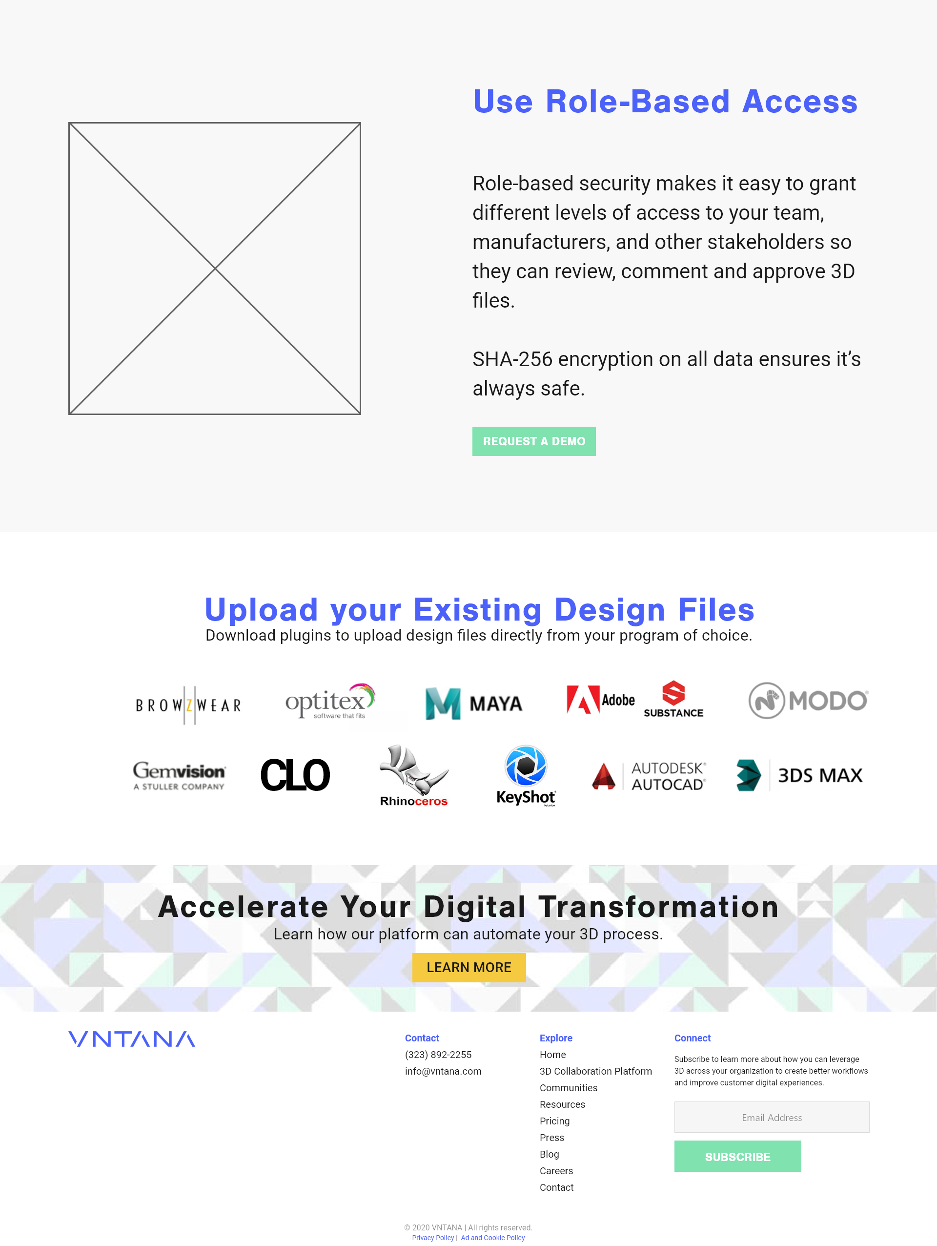 Their previous website design wasn’t accurately showcasing VNTANA’s capabilities. VNTANA is revolutionizing the world of 3D Ecommerce, and that was not apparent from their website.